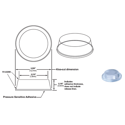 1/2″ Dia x 3/16″ Thick Clear Bump-On 200 per Sheet