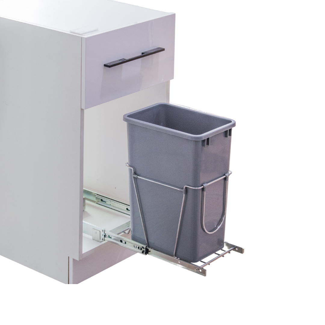 Single Bin Trash Can Pull Out 35 QT Polished Chrome with Bottom Mount BB Slide