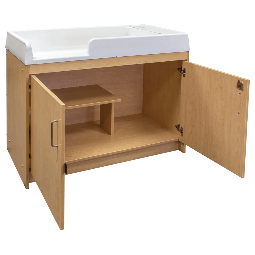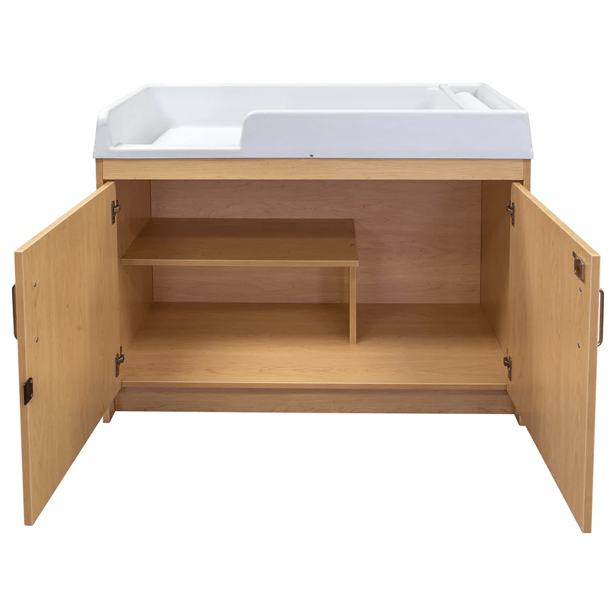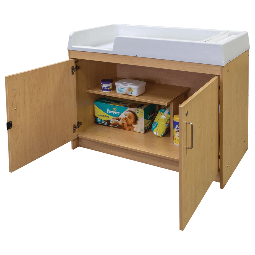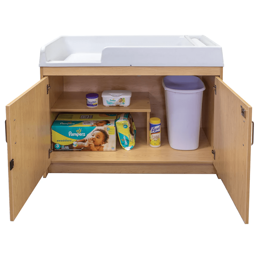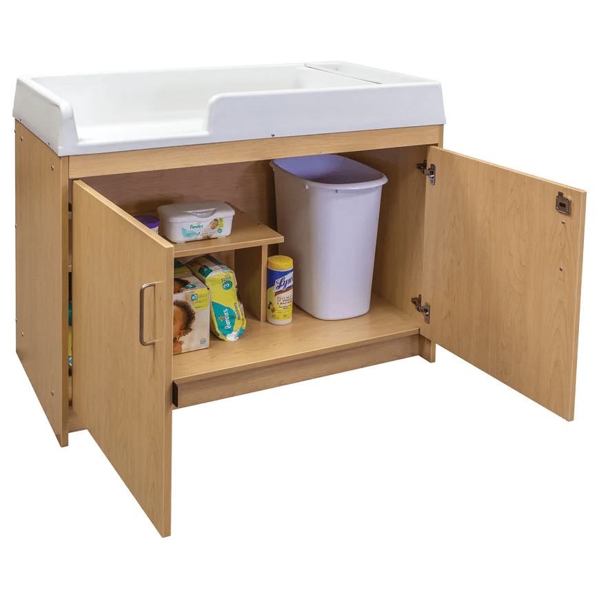 Loads of features in a small amount of space! Our Infant Changing Table has a small footprint, with easy access, lockable storage below. Ideal for an active childcare environment, the 1-piece, molded top can be quickly disinfected between uses. Durable, easy to clean surfaces will make this changing furniture a teacher favorite!