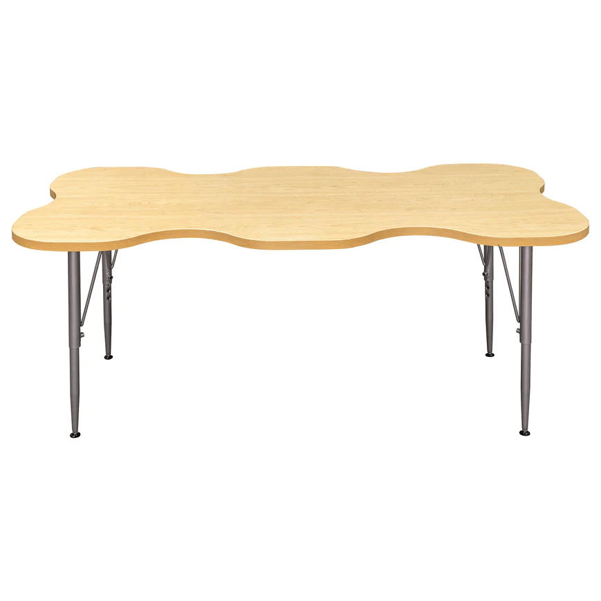 - 60″W x 30″D uniquely shaped 1″ thick top with spaces for 6 children